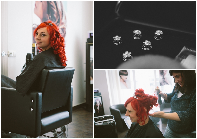 Als meine große Nichte Caro mich fragte, ob ich ihre Hochzeit als Fotografin begleiten möchte, habe ich nicht eine Sekunde gezögert. Und wenn, dann möchte ich natürlich das volle Programm: Von Friseur morgens um acht, dem Ankleiden zu Hause im Kinderzimmer, der Trauung im Schweriner Rathaus, dem kurzen Brautpaarshooting im Burggarten bis hin zur Feier im Seeidyll, bevor ich dann selbst abends als Gast die Party mit der Familie ausklingen ließ.