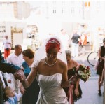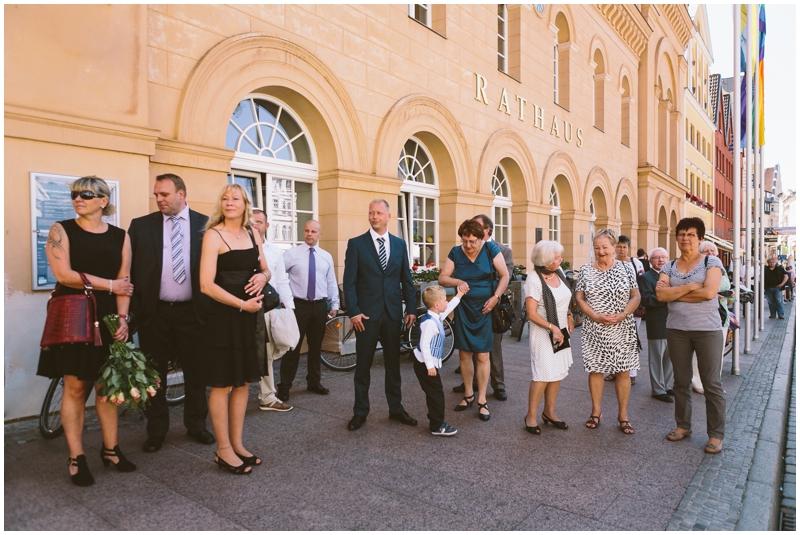 Wie bereits beim Engagementshooting geprobt, ging es nach der Trauung im Schweriner Rathaus zu Fuß durch die Stadt zum Anleger der Weißen Flotte, wo sich die Hochzeitsgesellschaft zu einer Dampferfahrt verabschiedete.