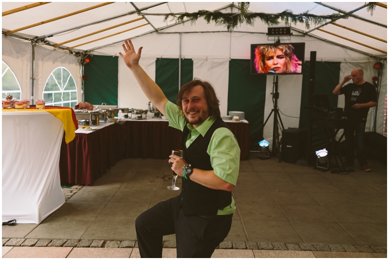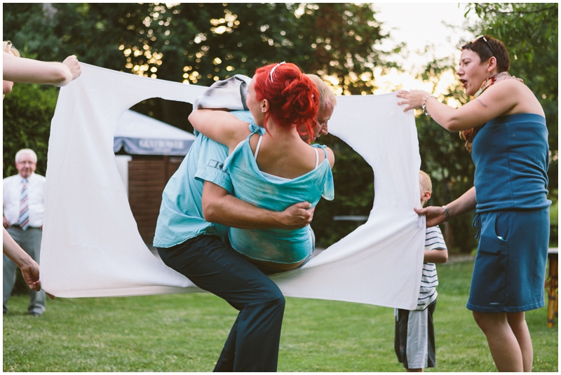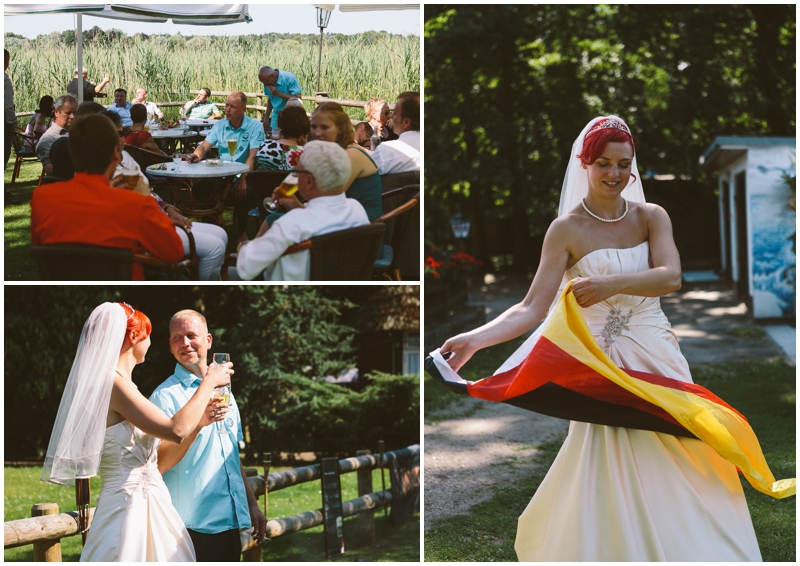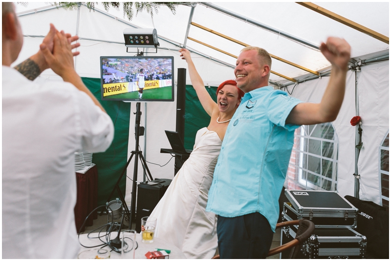 Als ich zusätzlich hörte, dass der DJ einen Monitor mitbringt, wo alle Fußball schauen können – immerhin das WM-Viertelfinale Deutschland gegen Frankreich – hatte ich sofort das Bild des jubelnden Brautpaares im Kopf, wenn Deutschland ein Tor schießt. Und hey, ich bekam es!