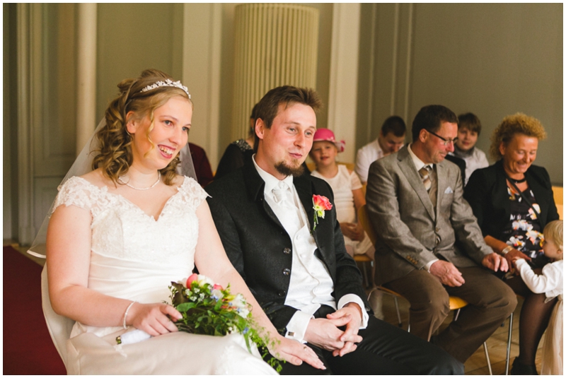 Es klingelt an unserer Tür. Davor stehen Simone und Stefan von gegenüber, langjährige Nachbarn. Ob ich ihre Hochzeit fotografisch begleiten würde, fragen sie mich. Und ob, da sage ich als Hochzeitsfotografin doch nicht nein! Terminlich passte es auch und so fuhr ich mit Stefan an einem heißen Sommertag gemeinsam in die Stadt, wo im herrlich klimatisierten Saal des Rathauses Schwerin die Trauung stattfand.