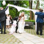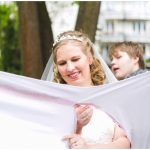 „Was machen wir eigentlich bei Regen?“ werde ich als Hochzeitsfotografin oft in den Vorgesprächen gefragt, und meine Antwort darauf lautet stets „Regenbilder!“ Improvisation ist alles. Und Plan B. So auch hier bei der Hochzeit von Sandy und Christian im Schweriner Schleswig-Holstein-Haus. Trotz des Regens waren alle entspannt und super gelaunt. Nach der Trauung fuhren die Gäste mit der Weißen Flotte nach Zippendorf, während ich mit dem Brautpaar und Regenschirm zum Schloss zog, um dort in den weniger tröpfelnden Momenten Brautpaarbilder zu machen. Was hatten wir für Spaß! Auch Cosplayer, die wegen eines Festivals in Schwerin waren, wurden mit einbezogen.