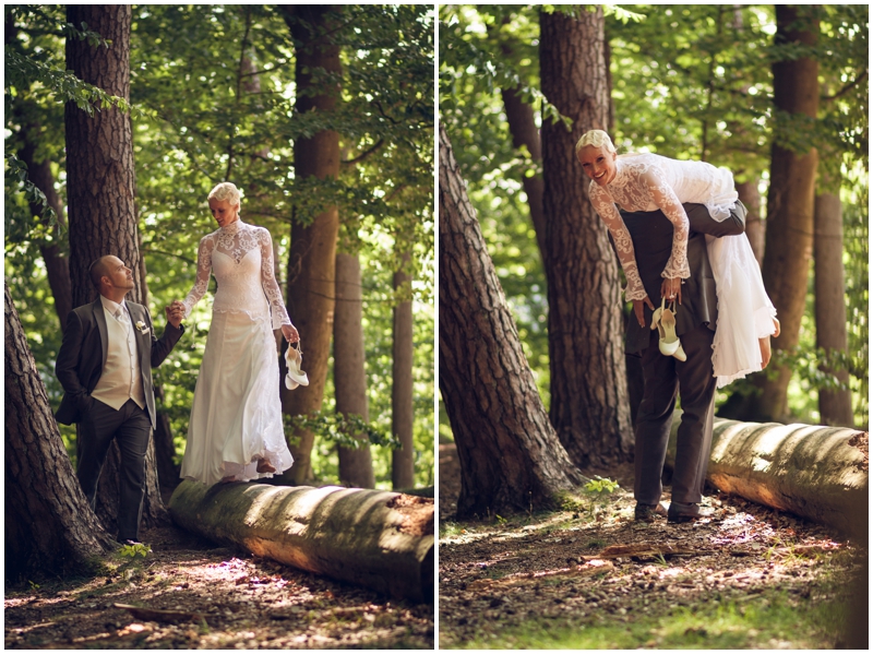 Nach dem entspannten Engagementshooting konnte die Hochzeit von Sandra und Heiko nur traumhaft werden. Die Sonne schien, was das Zeug hält, die Gäste waren prima drauf und alle hatten riesengroßen Spaß. Nach der Trauung im Schweriner Rathaus und einem kleinen Sektempfang auf dem Schlachtermarkt fuhren wir in den Friedrichsthaler Forst. Dort, in der Kühle des Waldes, entstanden die Brautpaarbilder.