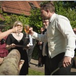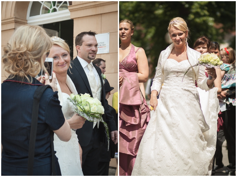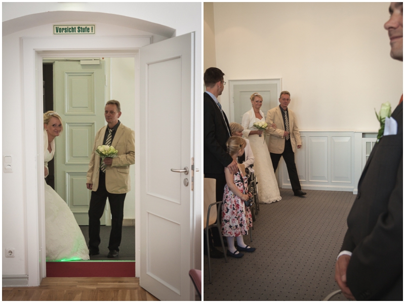 Geheiratet wurde im Rathaus Schwerin; dann fuhren wir für die bereits geprobten Brautpaarbilder (klick) in den Schlossgarten und anschließend nach Matzlow, wo die Gäste und Mitarbeiter der Kutscherscheune einen herzlichen Empfang bereiteten.