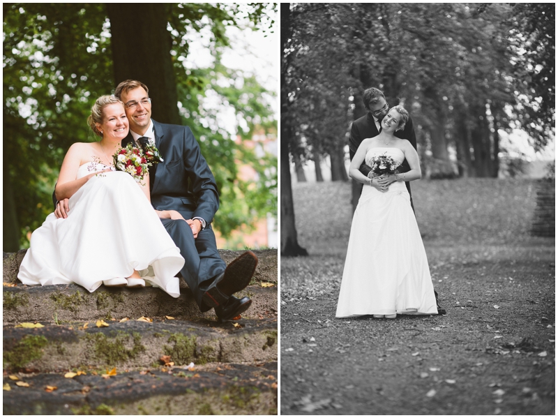 Währenddessen spazierte ich als Hochzeitsfotografin mit dem frisch verheirateten Paar einmal durch den Schweriner Burggarten um das Schloss herum und nach Ankunft des Dampfers ging es zum Feiern ins Hotel ARTE nach Krebsfoerden.